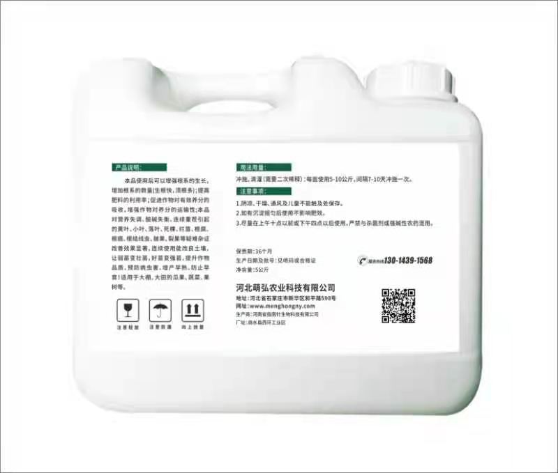 河北萌弘農(nóng)業(yè)科技有限公司是一家集研發(fā)、銷(xiāo)售、生產(chǎn)服務(wù)為一體推廣高新科技為主的綜合性企業(yè),目前主要從事高端液肥,葉面肥,沖施肥的研發(fā)生產(chǎn)和銷(xiāo)售。企業(yè)專(zhuān)注于作物增產(chǎn)的營(yíng)養(yǎng)方案開(kāi)發(fā),秉承讓作物營(yíng)養(yǎng)科學(xué)規(guī)范之道,為農(nóng)業(yè)豐產(chǎn)助力。